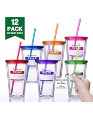 Kitchen: Cupture? Classic Candy Insulated Tumbler Cup with Lid, Reusable Straw & Hello Name Tags - 16 oz, 12 Pack (Blue, Orange, Pink, Red, Purple, and Green)