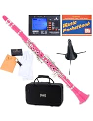 Mendini MCT-PK+SD+PB Pink ABS B Flat Clarinet with Case, Stand, Pocketbook, Mouthpiece, 10 Reeds and More